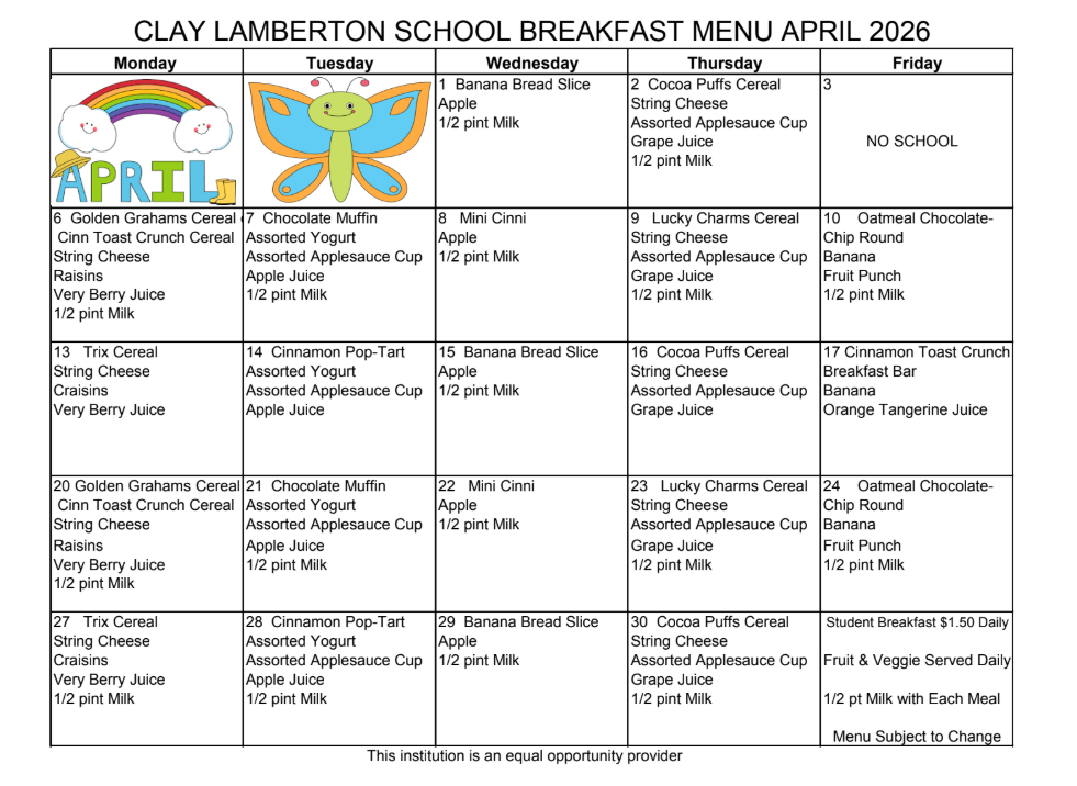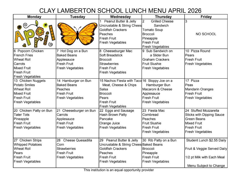 • April 14 | Clay Lamberton PTO Meeting | 5 PM | PLC Room