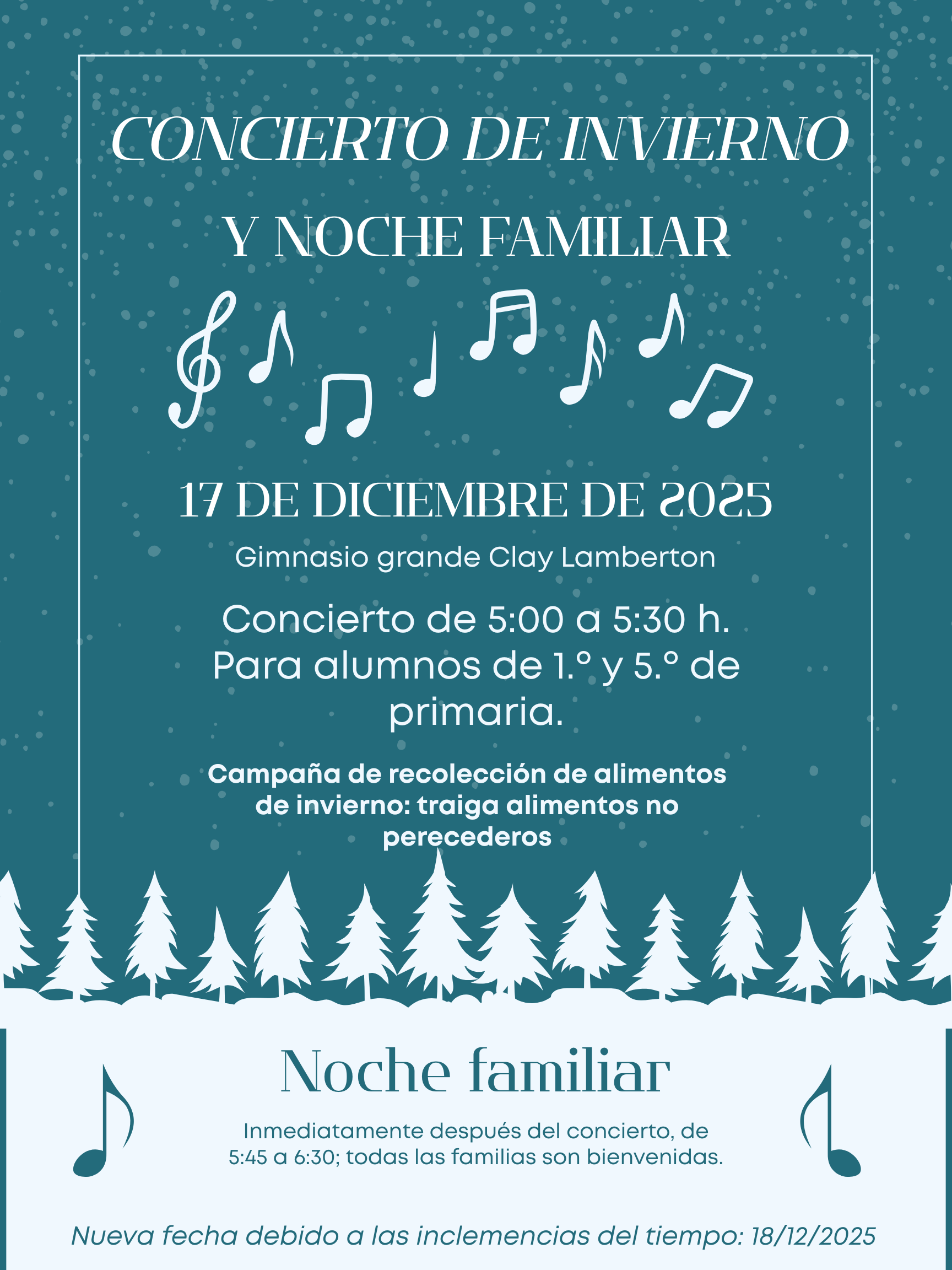 • Wednesday, December 17 | Family Night | 5:45 PM - 6:30 PM | All Families Welcome! • Tuesday, December 23 | Pajama Day
