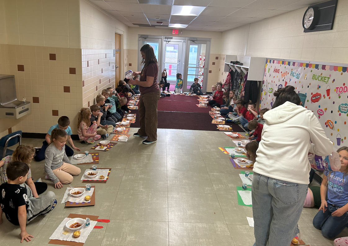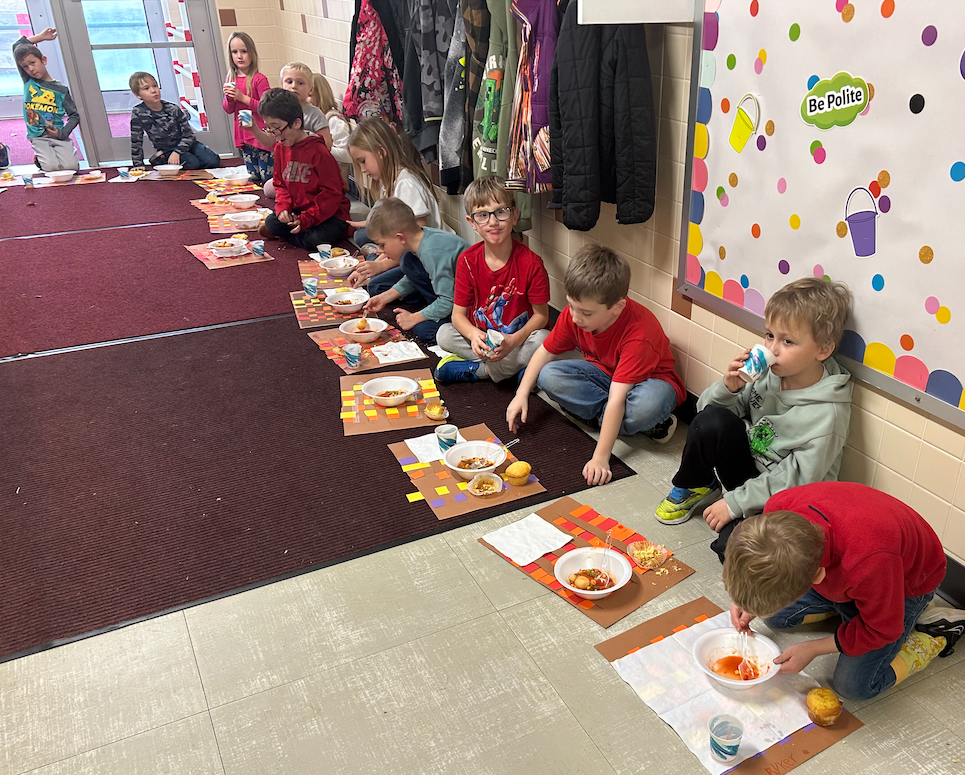 For three decades, the tradition of Stone Soup has been cherished in 1st grade! This special stone has been handed down through numerous teachers over the years. Surprisingly, it creates a delicious soup! Both 1st grade students and teachers add ingredients to whip up a warm meal, all enjoyed on their handmade Thanksgiving placemats! We are so grateful for these little turkeys!