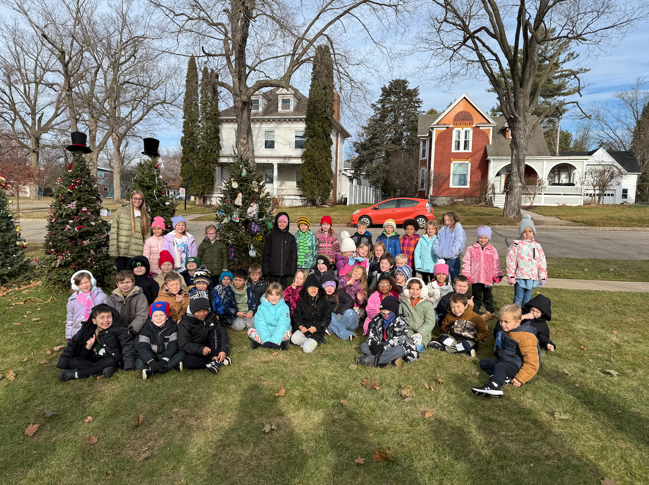 First grade students bundled up and walked to Nathan Strong Park to admire the beautifully decorated Christmas trees, including the one sponsored by the school's PTO! They also had a great time playing in the park.