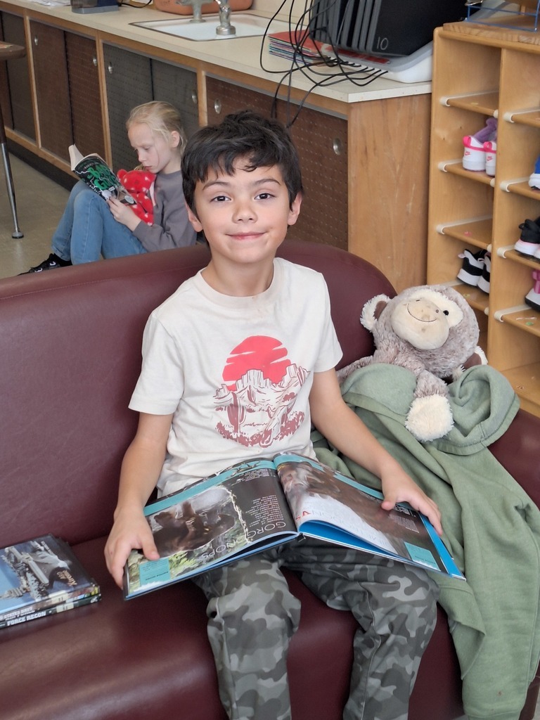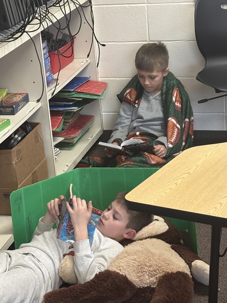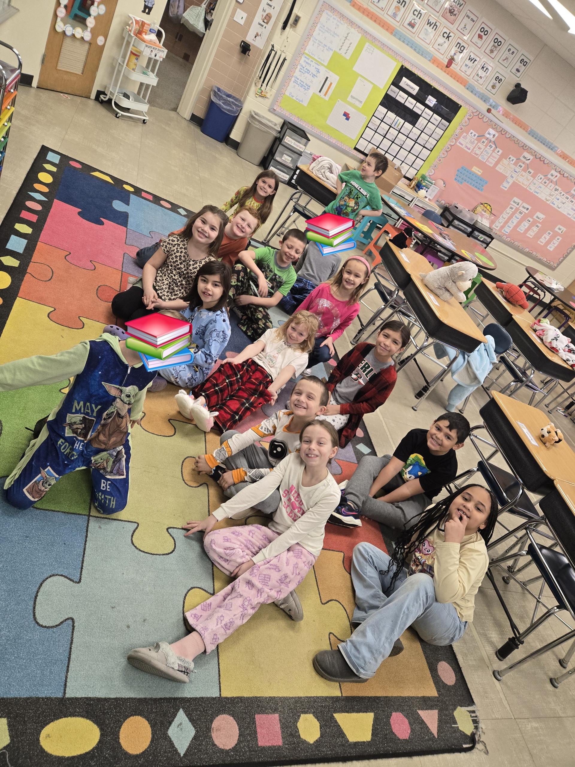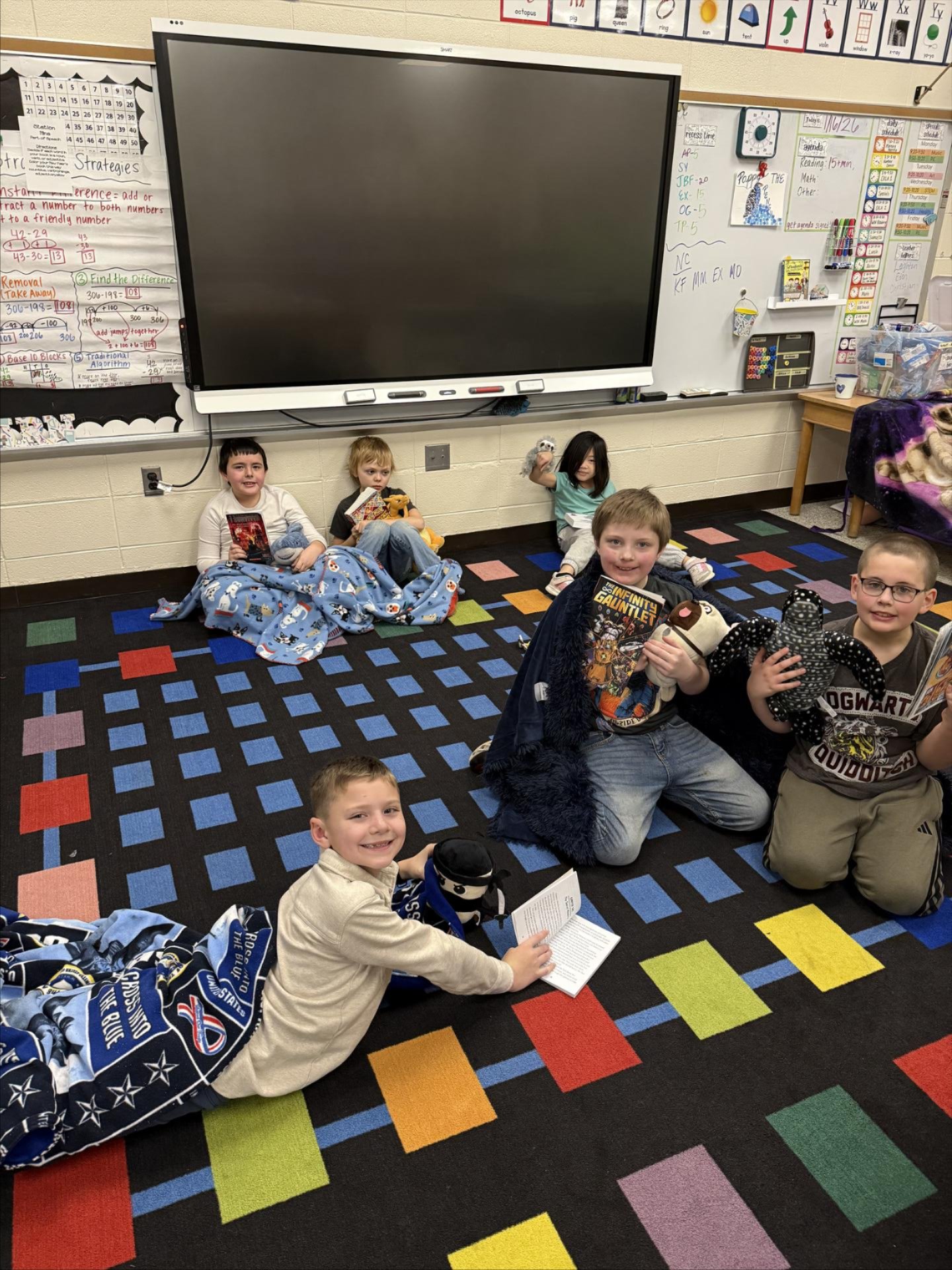 Ms. Seitz’s 2nd-grade class got extra cozy—pajamas on, stuffies and blankets in hand, yummy snacks nearby, and students happily reading their favorite books. The best kind of learning happens when you’re comfy! |