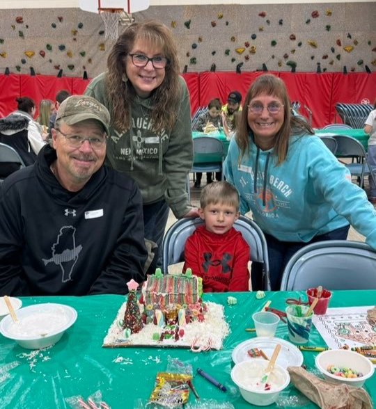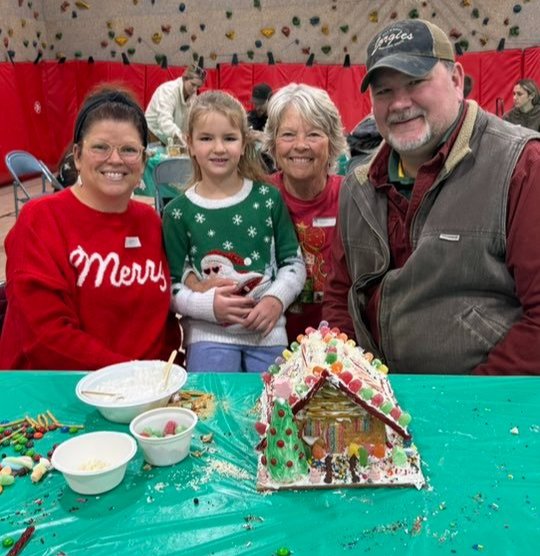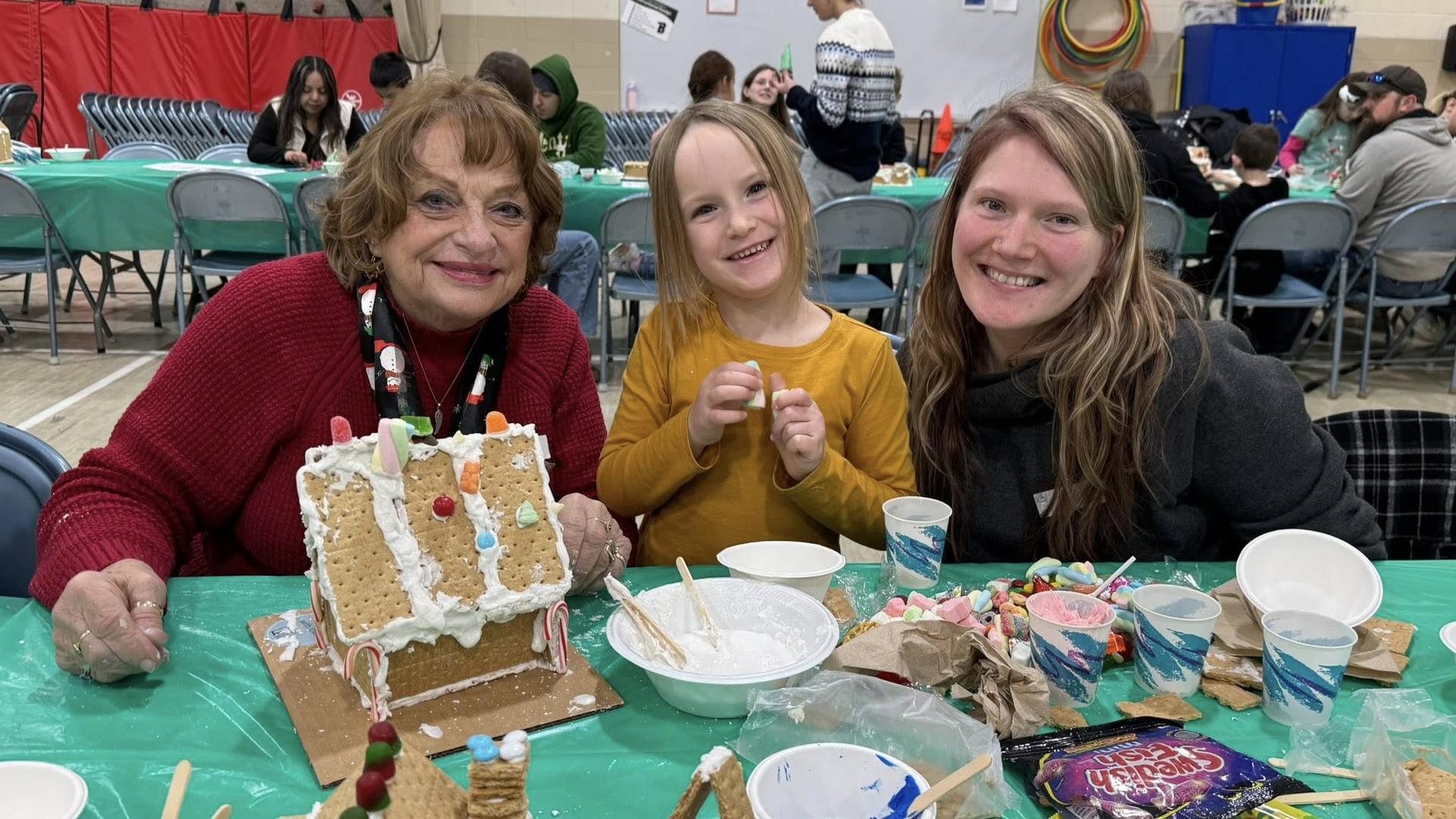 Our first-grade students and their families gathered in the small gym for the annual Gingerbread House Making Day!