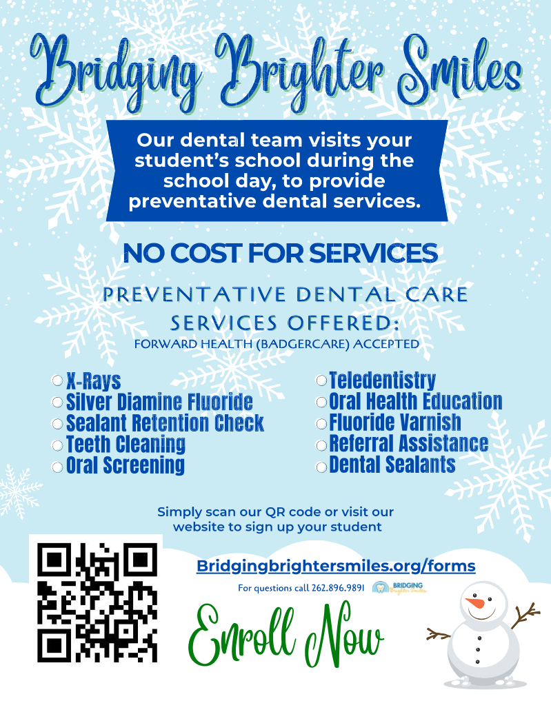 Sign your child up for free preventive dental care at school! Services are completely complimentary, and every student is eligible - regardless of insurance or family income.