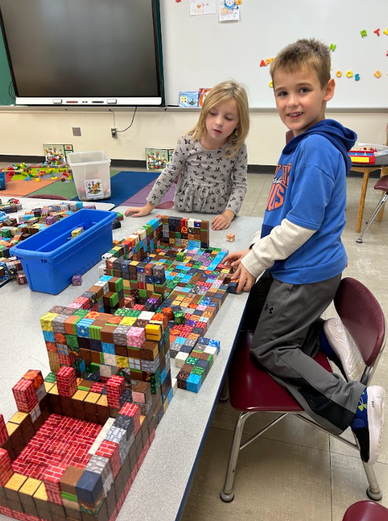 Recently, students used a 3D pen to create glasses and Eiffel Towers, built various things with cardboard, listened to audiobooks with headphones, and enjoyed using VR headsets, which is their favorite activity!