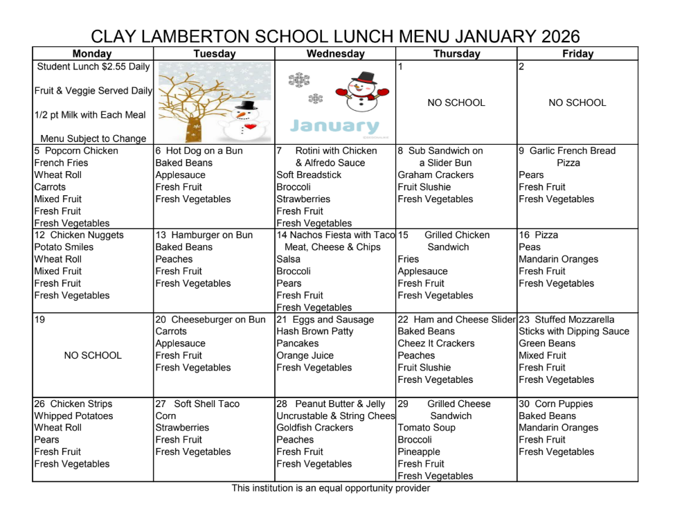 • January 13 | Clay PTO Meeting | 5 PM
