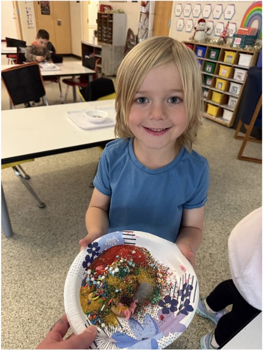 Ms. Mullen's kindergarten class had an amazing time decorating gingerbread men with all the frosting and sprinkles they could imagine—just look at those creations!