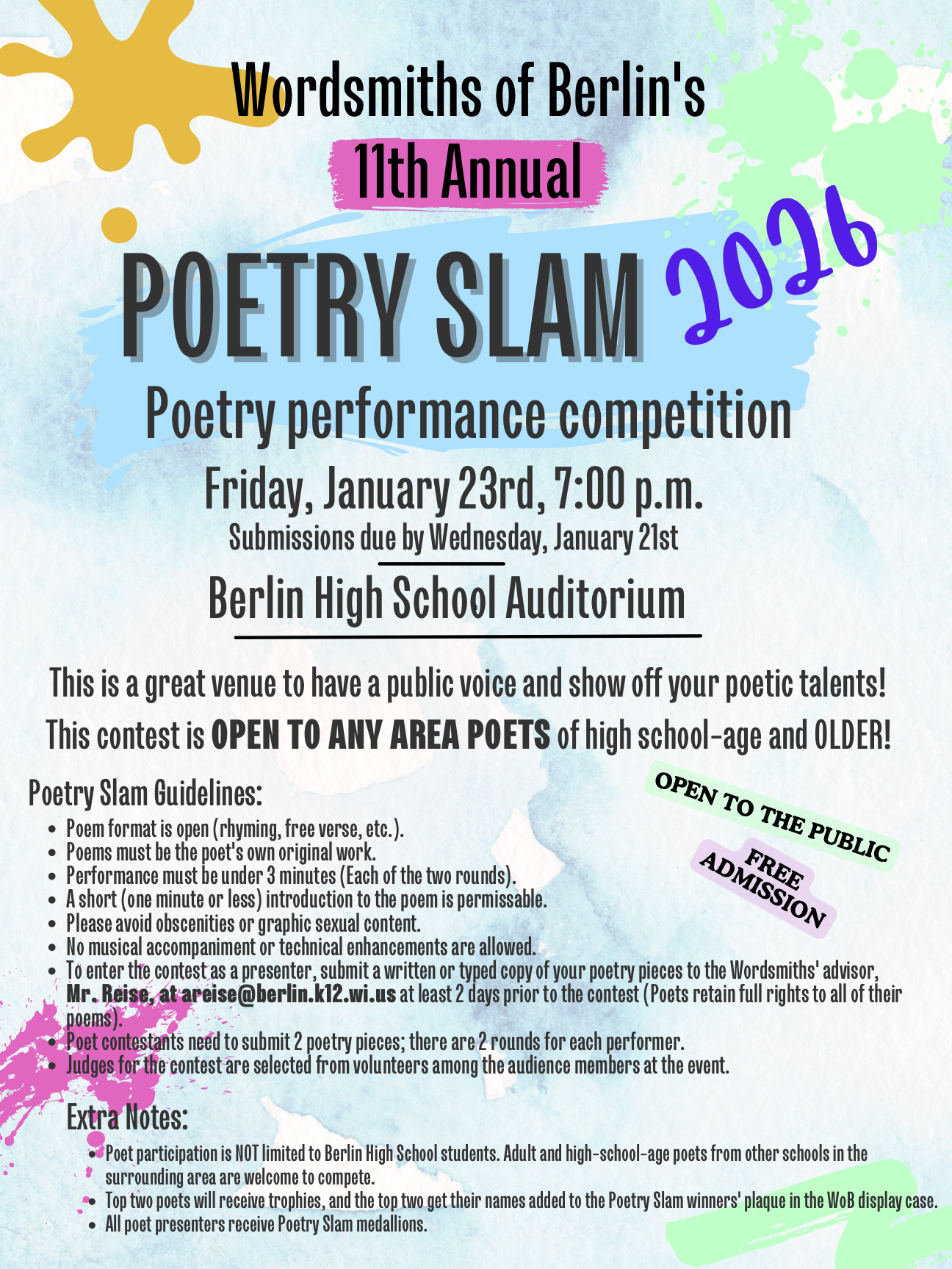• January 23 | Poetry Slam | BHS Auditorium