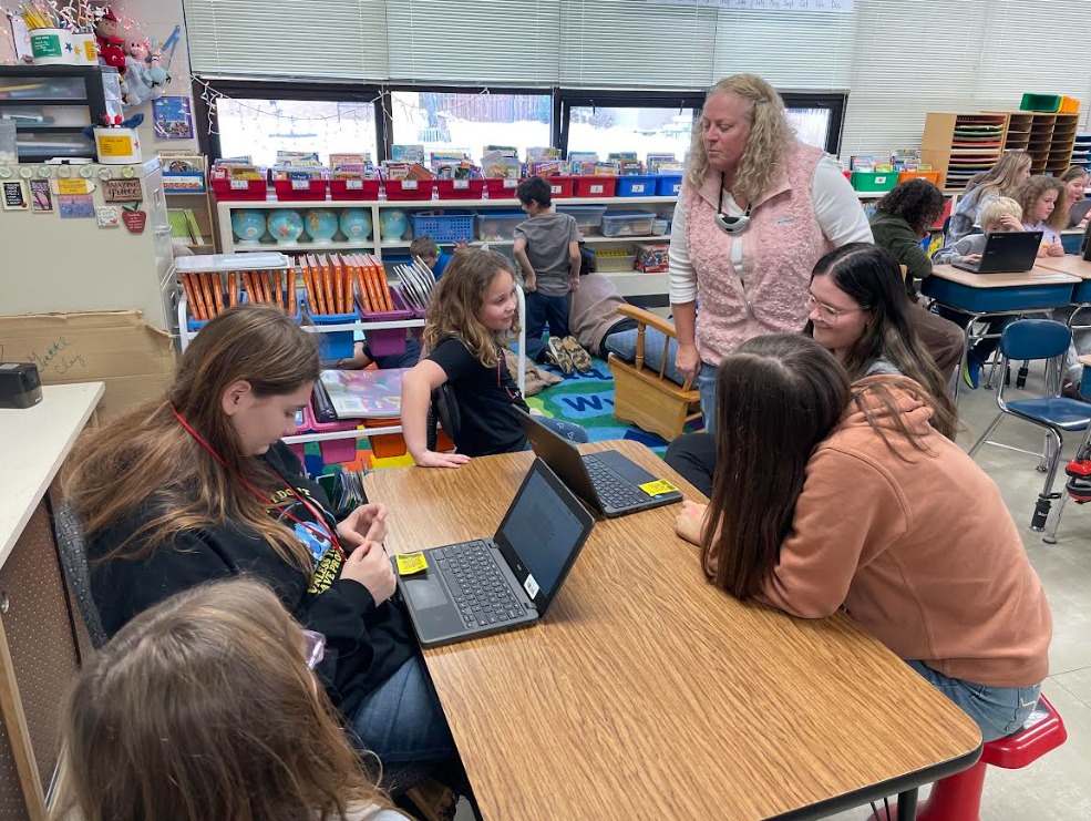 The BHS Education for Parenting class recently teamed up with Mrs. Goettl's second graders for a walk to the park to admire the trees. The older students also lent a helping hand in the elementary classroom.